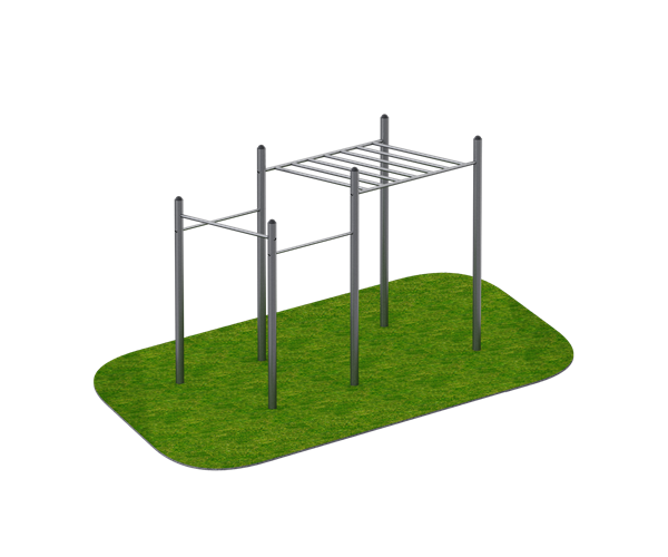 • Перекладины из трубы диаметром 34 мм и 43 мм, толщина стенки 3 мм, крепятся к стойкам в антивандальный стакан с защитой от выкручивания