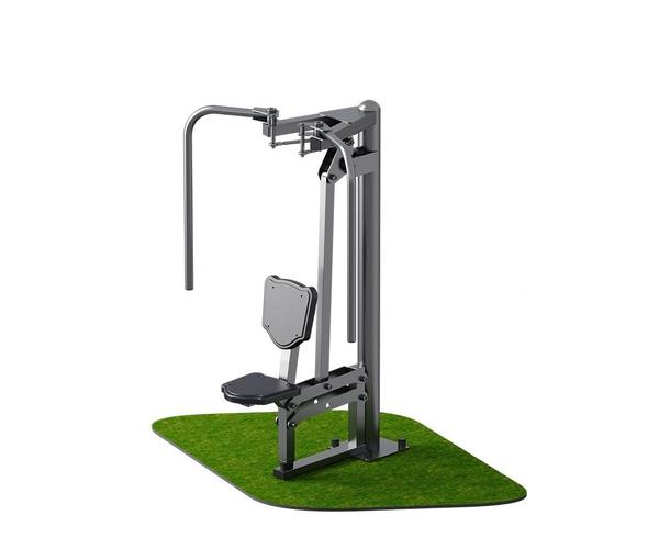 Тренажер предназначен для одного пользователя. Принимаете положение сидя и держась руками за рукоятки выполняете упражнение сведение рук на уровне груди. Развиваются внутренние мышцы рук, груди, спины и пресса.