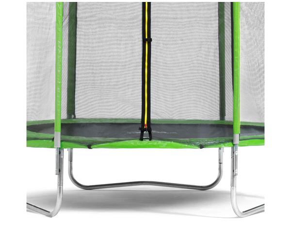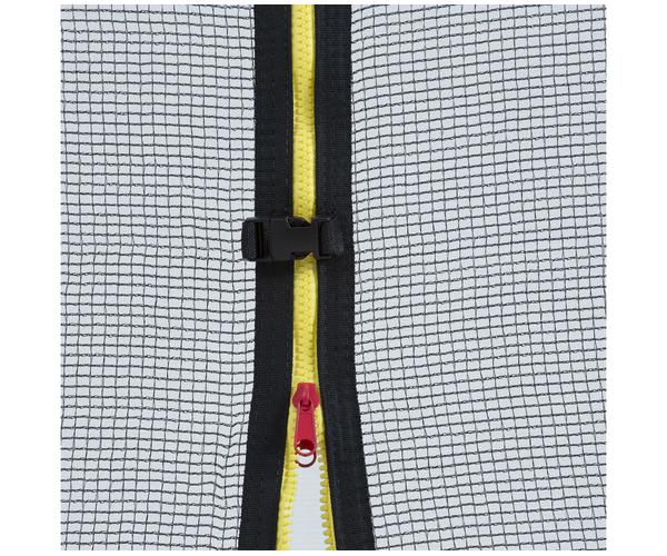• Защитная сетка. Внешняя защитная сетка, поставляемая в комплекте, обеспечит безопасность вам и вашим близким от случайного падения, изготовлена из высокопрочного нейлона, надежно крепится к стойкам батута. Стойки под защитную сетку в количестве 12 штук, диаметром 25 мм и толщиной 1,2 мм. Высота защитной сетки 170 см. Для защиты детей вход/выход через сетку выполнен на молнии с фиксирующими защелками с внешней стороны.