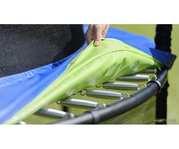 Опция DOUBLE — это возможность использовать две стороны мата. Просто переверните мат и Ваш батут сегодня может быть синим, а завтра зеленым. Кроме того, мы добавили слой черного покрытия для рамы батута, на контрасте такое решение придает новинке стильность и общий красивый вид. Помимо двойной оцинковки рамы, черное порошковое окрашивание стало заключительным, третьим, штрихом в безупречной защите от ржавчины.