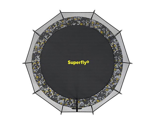 Серия Superfly имеет двухсторонний защитный мат, то есть вы можете переворачивать мат и менять дизайн батута. В комплекте два цветовых решения: это Digital Como — он же цифровой камуфляж и Black classic или просто классический черный.