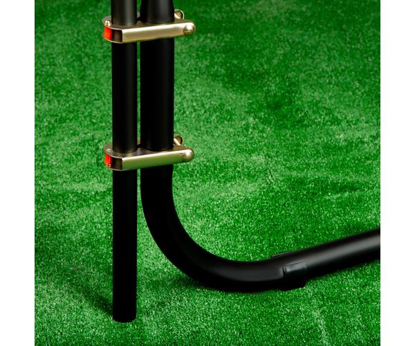- Т-образная конструкция стоек для фиксация сетки обеспечивает ее максимальное натяжение, без провисаний. Тем самым достигается максимальная безопасность при эксплуатации.