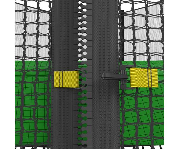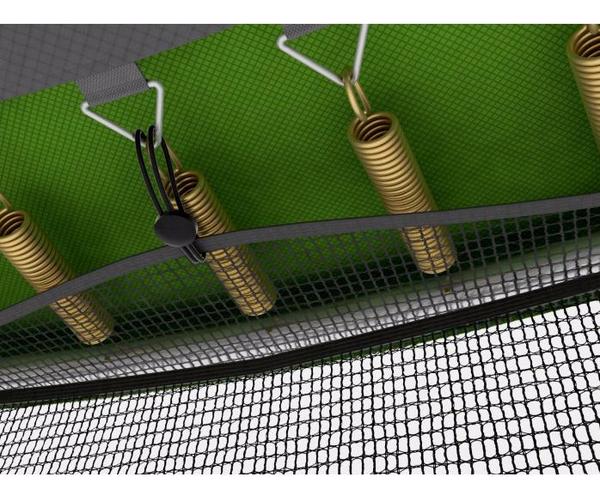 Защитный мат для пружин, расположенный по периметру батута, состоит из четырех слоев, обшитых ПВХ материалом, плотностью 130 г/см3 и надежно закрывает пружины.