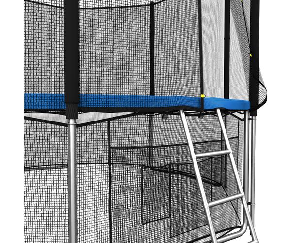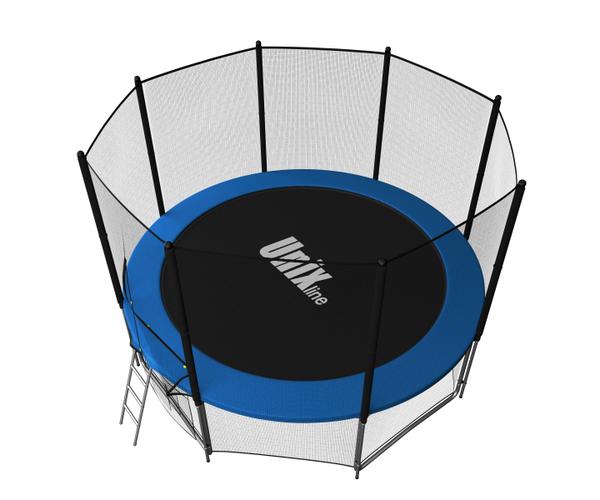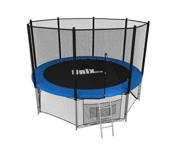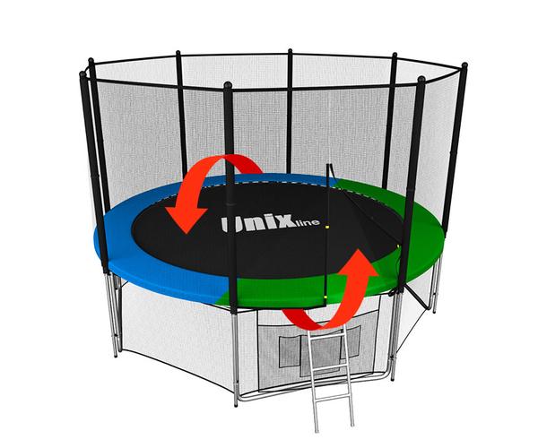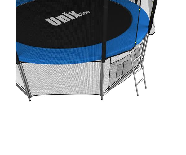 Помимо верхней защитной сетки, все батуты модельного ряда UNIX line оборудованы нижней защитной сеткой, которая препятствует проникновению под прыжковое полотно батута детей, животных, а так же попаданию посторонних предметов, и лестницей для удобства пользования. А в моделях диаметром от 10FT (305см.), в комплект входят специальные крепления батута к земле (колышки).