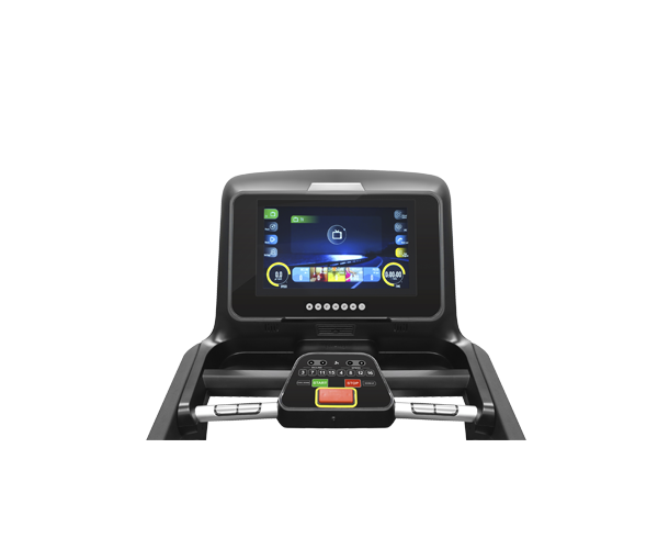 Бортовой компьютер беговой дорожки представляет собой цветной сенсорный TFT дисплей диагональю 18,5 дюймов. Отследить во всех подробностях свои успехи не проблема, на экран выводятся все важнейшие показатели: время, скорость, дистанция, расход калорий, шаги, пульс, угол наклона. Все разнообразие тренировок представлено в 24 предустановленных программах. Здесь можно найти интервальные тренировки, программы по снижению веса и сжиганию калорий, имитацию разнообразных ландшафтов (горы, холм, плато), по вкусу придутся и программы, направленные на повышение выносливости. Помимо предустановленных программ, можно воспользоваться самостоятельно регулируемым ручным режимом, а также создать собственный тренировочный профиль в одном из 10 пользовательских режимов. Здесь также есть 3 целевые тренировки (время, дистанция, калории) и 2 пульсозависимые. Разнообразить обстановку и очутиться на время тренировки в другом конце мира можно благодаря 3-м встроенным локациям.
