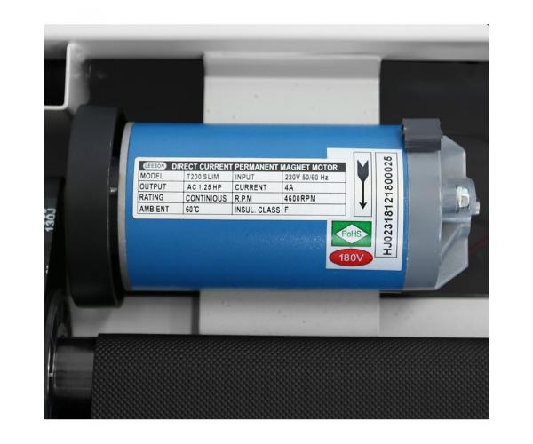 Работоспособность тренажера обеспечивает двигатель американской компании Leeson мощностью 1,25 л.с. В режиме пиковой мощности двигатель достигает 2.5 л.с. Такие показания обеспечивают скорость до 8 км/ч и выдерживают 90 кг веса. Беговое полотно размером 106*38 см подходит для занятий пользователям ростом до 190 см.