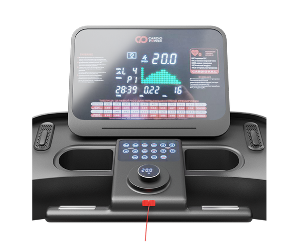 Показания консоли - скорость / расстояние / время / наклон / частота пульса / калории / программы