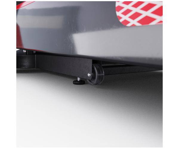 По бокам от бегового полотна расположены нескользящие подножки для начала тренировки: перед началом занятий встаньте на них, а затем запустите тренажёр. Система амортизации снижает ударные нагрузки на суставы и мышцы, что предотвращает возможные травмы.