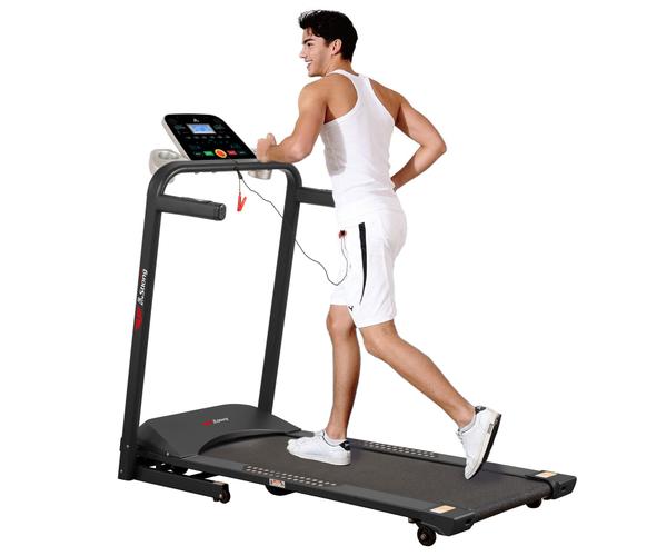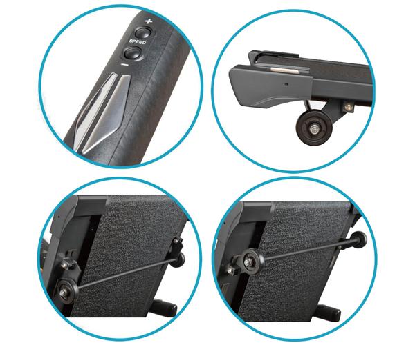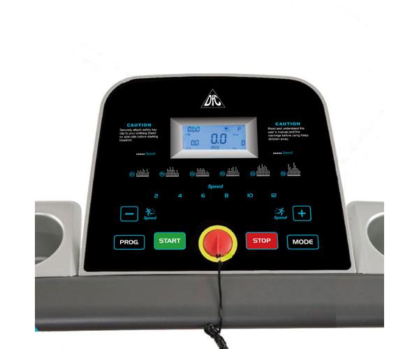 Голубой монохромный LCD дисплей показывает всю необходимую информацию. Сенсорная панель управления очень легка в управлении. Складная конструкция позволит компактно хранить тренажер, а транспортировочные ролики облегчат перемещение беговой дорожки. Для безопасности спортсмена предусмотрены подножки по обе стороны от бегового полотна с антискользящим покрытием.