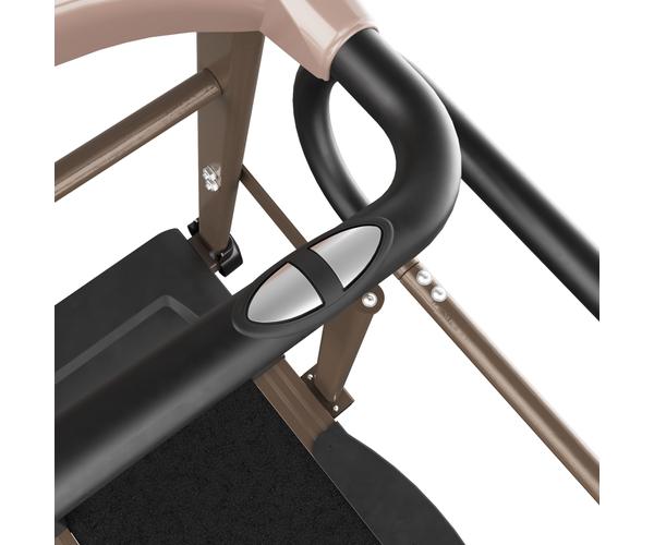 Пульсометры на поручне. На передних фиксированных поручнях реабилитационного тренажера расположены пульсометры, они позволяют следить за сердцебиением пользователя во время тренировки, данные выводятся на дисплей. Удерживайте датчики пульса (расположенные на ручках) обеими руками в течение 5 секунд, чтобы рассчитать и отобразить количество сердечных сокращений в минуту (уд/мин) на экране компьютера. Высокие поручни по бокам отличаются повышенной прочностью, поскольку принимают большую нагрузку от веса пациента, который на них опирается.