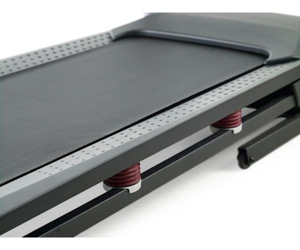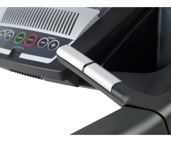 Износостойкое антистатическое полотно прослужит долго. Тренажер можно свободно перемещать с помощью транспортировочных роликов и установить максимально устойчиво, используя компенсаторы неровностей поверхности. Благодаря системе EasyLift дорожку можно с легкостью сложить и поставить вертикально, это облегчит ее использование даже в маленькой квартире.
