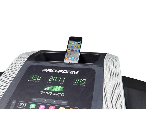 Двигатель мощностью 2.75 л.с. разгоняет беговое полотно от 1 до 20 км/ч. Кроме того, беговая дорожка ProForm 1050 Performance New имеет 18 программ тренировок совместимых с технологией iFit Live (5 скоростных, 5 интенсивных, 5 с наклоном и 3 на сжигание калорий). На поручнях установлены датчики измерения пульса, благодаря которым пользователь может следить за своим сердечным ритмом. Изменение угла наклона полотна (от 0 до 10 градусов) происходит в автоматическом режиме и позволит дозировать силовую нагрузку, в зависимости от физической формы. На встроенном LCD дисплее воспроизводится вся необходимая информация: время, текущая программа, показания скорости, пройденного расстояния, расхода калорий, пульс и угол наклона. Размер бегового полотна равен 51 x 140 см. Максимальная нагрузка не должна превышать 150 кг.