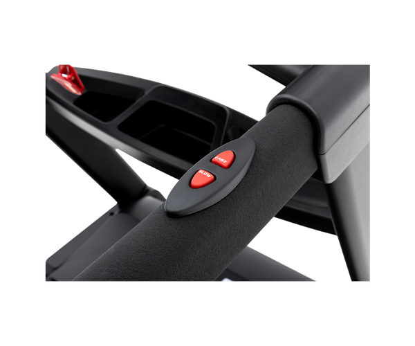 Удобная консоль. Беговая дорожка F65 оснащена охлаждающими вентиляторами и регуляторами скорости и наклона на подлокотниках для дополнительного удобства. Удобная консоль отображает скорость, наклон, время, пройденное расстояние, калории, пульс и темп и график пиков и спадов для различных программ. Встроенные динамики позволяют подключать мультимедийное устройство и воспроизводить музыку во время тренировки.