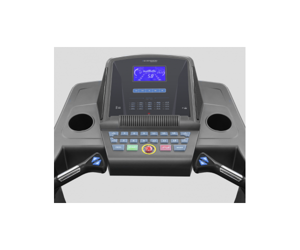 Тренировочный компьютер представлен голубым LCD-дисплеем высокой контрастности диагональю 18 см с профилем тренировочных программ. Символы белого цвета на голубом фоне обладают хорошей яркостью и отлично читаемы в любое время дня и ночи. На экран одновременно выводятся все основные параметры тренировки – время, скорость, дистанция, потраченные калории, угол наклона и пульс. В программный пакет входят 20 предустановленных программ, направленных на тренировку скоростных качеств, выносливости, укрепления сердечно-сосудистой системы и похудания. 3 программы рассчитаны на контроль пульса. Помимо этого, можно воспользоваться самостоятельно регулируемым ручным режимом, а также создать 1 из 3-х собственных программ.
