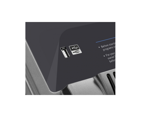 Тренировочный компьютер представлен голубым дисплеем диагональю 18 см с профилем тренировок. Встроенные программы ориентированы на любые возможные задачи - тренировку выносливости или скоростных качеств. Помимо предустановленных программ, можно воспользоваться самостоятельно регулируемым ручным режимом, а также создать собственную программу в одном из 3-х пользовательских режимов. 3 пульсозависимые программы отвечают за тренировку тех пользователей, которым важно контролировать верхние пределы частоты сердечного ритма. Для точного определения пульса и просто комфортной тренировки в компьютер встроен высокоточный беспроводной телеметрический приемник (для считывания частоты сердечного ритма рекомендован нагрудный ремень-передатчик Polar T34). Разнообразить тренировку поможет мультимедийная составляющая - в консоль дорожки установлены колонки мощностью 3 ватта, а носителями аудио файлов выступают MP3-плеер, смартфон или USB-накопитель. Рукоятки позволяют не только удобно и безопасно тренироваться, но и управлять базовыми параметрами - скоростью и углом наклона. Выровнять положение тренажера относительно поверхности можно за счет компенсаторов неровностей пола.
