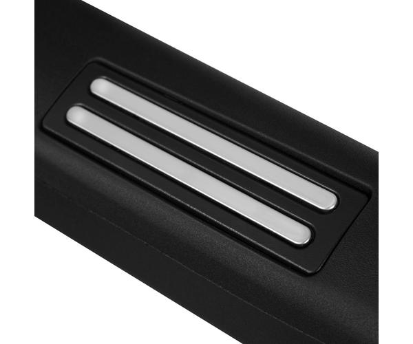 Отдельно стоит сказать про консоль и механику управления. Дисплей состоит из основного LED экрана c профилем тренировки и 4-х дополнительных, выводящих основные параметры тренировки. Часть управления вынесена на джойстик-шайбу – это удобный и современный метод управления. Одновременно сам джойстик-шайба представляет из себя LCD экран, на который выводятся такие параметры как скорость, угол наклона и частота пульса. Вместе с джойстиком дорожка управляется консольными сенсорными клавишами. На боковых поручнях расположены сенсорные датчики пульса.