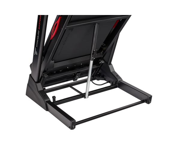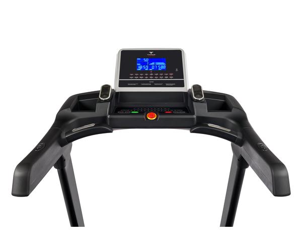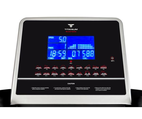 Тренировочный компьютер представлен голубым многофункциональным дисплеем диагональю 7 дюймов (17,8 см.). Встроенные программы ориентированы на любые возможные задачи - снижение веса, тренировку выносливости или скоростных качеств. Помимо предустановленных программ, можно воспользоваться самостоятельно регулируемым ручным режимом, а также создать собственную программу в одном из 3-х пользовательских режимов. 3 пульсозависимые программы с предустановленными значениями 60%, 75%, 90% отвечают за тренировку тех пользователей, которым важно контролировать показатели частоты сердечного ритма. Для точного определения пульса и просто комфортной тренировки в компьютер встроен высокоточный беспроводной телеметрический приемник. Разнообразить тренировку поможет мультимедийная составляющая - в консоль дорожки установлены колонки мощностью 3 ватта, а носителями аудио файлов выступают MP3-плеер или смартфон.