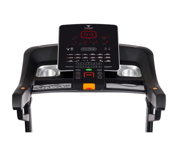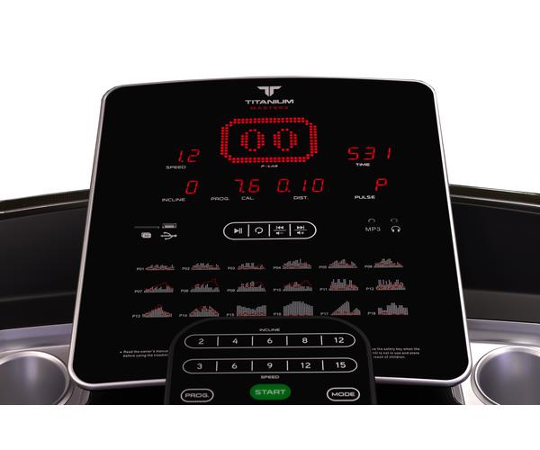 Тренировочный компьютер Titanium Masters Physiotech TLС представлен основным LED-дисплеем и 6-ю буквенно-цифровыми LCD-дисплеями. Встроенные программы ориентированы на любые возможные задачи - снижение веса, тренировку выносливости или скоростных качеств. Помимо предустановленных программ, можно воспользоваться самостоятельно регулируемым ручным режимом, а также создать уникальную тренировку в одном из 3-ех пользовательских режимов. Для тех кому важен контроль за частотой пульса можно воспользоваться одной из 3 пульсозависимых программ. Для точного определения сердечного ритма и просто комфортной тренировки в компьютер встроен высокоточный беспроводной телеметрический приемник производства Polar. Разнообразить тренировку поможет мультимедийная составляющая - в консоль дорожки установлены колонки мощностью 3 ватта, а носителями аудио файлов выступают MP3-плеер, смартфон, USB-флешка или SD карта. Через USB вход также можно зарядить мобильный телефон.