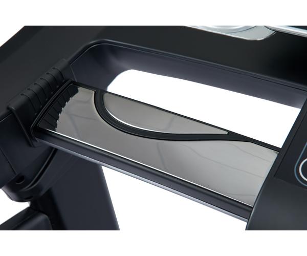 К другим особенностям Titanium Masters Physiotech TLC относится двухфазная гидравлическая система складывания easy-DROP™ Plus, существенно облегчающая складывание такой тяжелой дорожки. Кроме того, тренажер надо еще и переместить. За это отвечает система легкого перемещения easy-MOVE™, в основе которой лежат 4 транспортировочных ролика, а не 2 (как это принято в классическом варианте). Тренажер не нужно наклонять, транспортировка происходит с опорой на все 4 ролика.