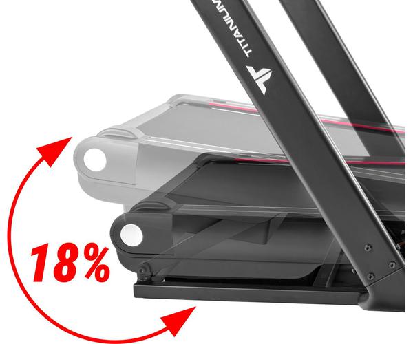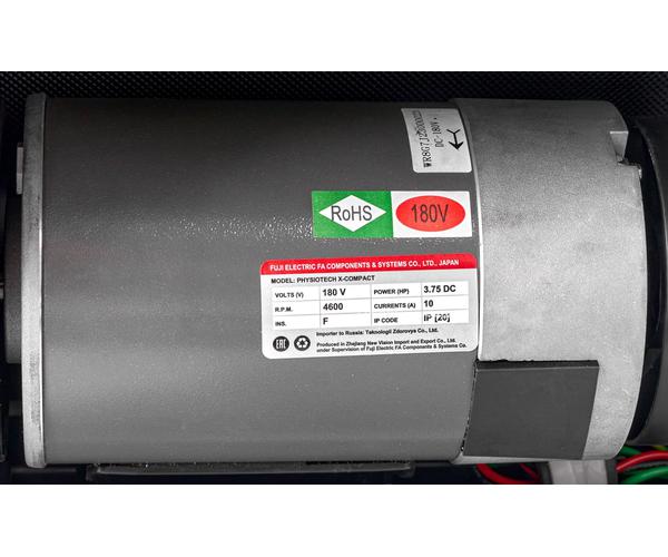 По своим техническим характеристикам Titanium Masters Physiotech X-Compact полностью соответствует своему премиальному уровню. Двигатель японской Fuji Electric (Fuji Servo™ C-Series ) с постоянной мощностью 3,75 л.с. и пиковой 6,38 л.с. по сути является переходным в класс полупрофессиональных дорожек. В домашнем использовании он практически не имеет ограничений, максимальный вес пользователя составляет 160 кг. Следствием мощного двигателя является не только большой максимальный вес пользователя, но и максимальная скорость. Для Titanium Masters Physiotech X-Compact она составляет 22 км/ч, что закрывает потребности любых пользователей, включая профессиональных спортсменов. При необходимости можно увеличить нагрузку за счет подключения электрического угла наклона, его диапазон составляет от 0 до 18%. Амортизация, включающая в себя 2 динамических эластомера VCS™ коммерческого класса и 2 фронтальные прорезиненные опоры, настроена на средне-мягкий уровень жесткости.