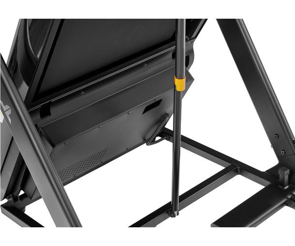Дорожка построена на новейшей перспективной платформе “Type X” и выделяется среди остальных уникальной формой рамы – в сложенном виде тренажер имеет выраженную форму “X” за счет разнонаправленного расположения рамы и стоек консоли, а также убранного под переднюю часть деки моторного отсека. Сочетание ультрасовременного форм-фактора и передовых технологических решений однозначно привлекут внимание тех пользователей, для кого эстетика является важным фактором выбора.