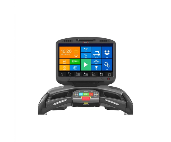 • 18.5"TFT Touch Screen: скорость, время, расстояние, калории, частота сердечных сокращений, программа бега, наклон, установленные программы