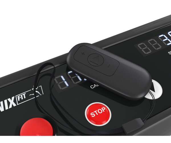 Удобный пульт дистанционного управления настраивает движение бегового полотна, и при необходимости позволяет остановить устройство.