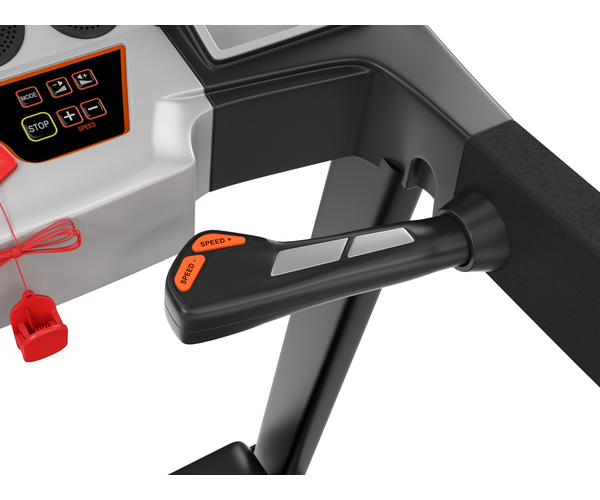 Максимальная скорость беговой дорожки составляет – 16.8 км/ч, а также в нее встроен механический угол наклона с внушительным показателем для домашних тренажеров - 15%! Устройство обладает интуитивно понятной панелью управления, которая отображает на себе такие параметры как скорость, пройденные шаги, дистанция бега, потраченные калории, время тренировки.
