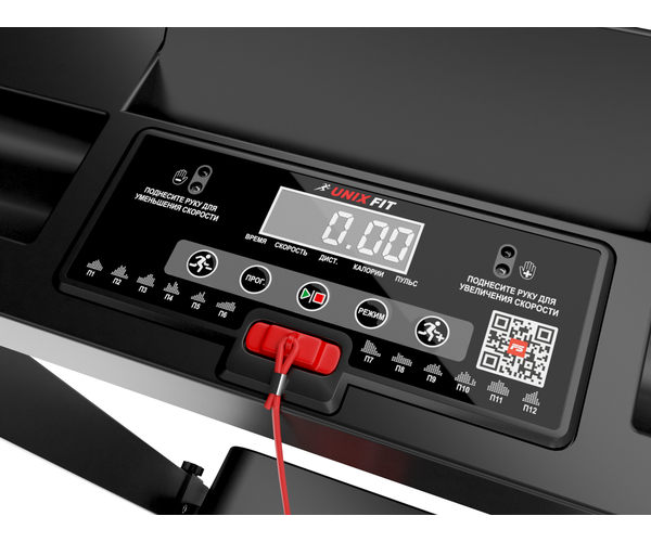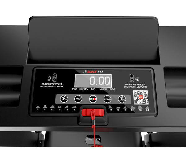 Беговая дорожка ST-440 оснащена инновационной функцией бесконтактного управления «NO TOUCH CONTROL», которая позволяет регулировать скорость бега с помощью инфракрасного датчика. Теперь, чтобы поменять темп тренировки, достаточно поднести руку к датчику управления и можно будет ускорять или замедлять интенсивность бега! Наличие пульсометра на поручнях поможет следить за сердечным ритмом во время занятий на тренажере.