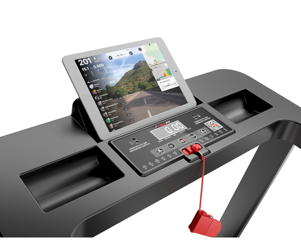 Наличие удобного держателя под планшет или смартфон позволит пользователю продолжать бегать, не отвлекаясь от своих дел! Любимый трек или фильм внесет разнообразие в монотонный процесс занятий на тренажере.