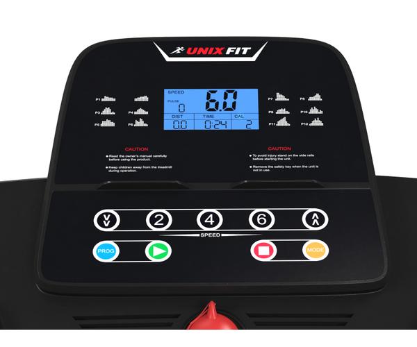 Модель UNIXFIT ST-530M имеет, пожалуй, самый большой угол наклона бегового полотна среди моделей с механической регулировкой. В верхнем положении угол наклона составляет 15(!) градусов. Максимальная скорость бега на данной модели составляет 12 км/ч, 14 программ тренировки и удобная панель управления с быстрыми кнопками переключения скорости и информативным LCD дисплеем с голубой подсветкой - все что нужно для хорошей тренировки. К уникальным особенностям беговой дорожки UNIXFIT ST-530M также можно отнести компактность как в сложенном виде, так и в рабочем состоянии.