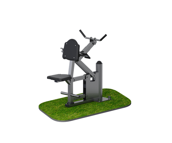 Примите положение сидя, ногами упритесь об упоры, поставьте локти на подставки и возьмитесь за рукоятки и тяните на себя.