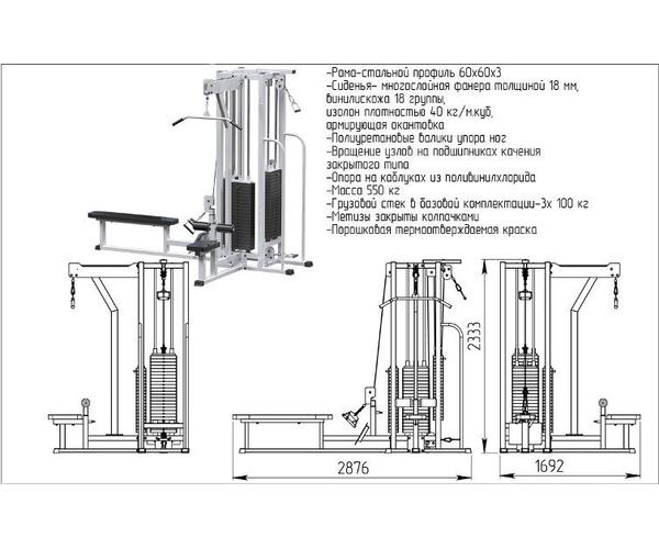 • Габариты тренажера (ДхШхВ) - 2880*1690*2330мм;