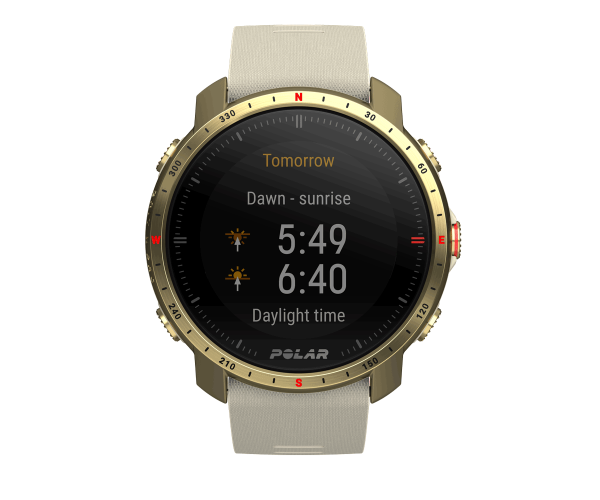 • Информация Polar Grit X Pro – будь всегда в курсе. Информационные панели предоставляют быстрый доступ к жизненно важной информации, необходимой для точного планирования, куда бы вы ни решили отправиться (высотомер, координаты, компас, погода, время восхода и захода солнца).