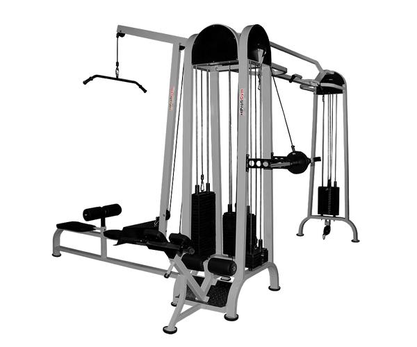 Четырёхпозиционная станция с грузоблоками, включает в себя: кроссовер; тренажёр для предплечий (грузоблок вращения кисти); гиперэкстензия наклонная; универсальная тяга (верхняя и нижняя).