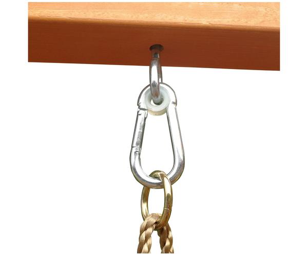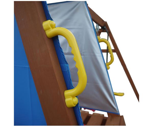 Качели имеют надежное подвесное крепление на боковой части комплекса.