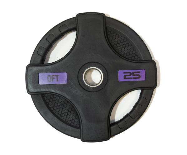 Купить диск олимпийский обрезиненный Original Fittools FT-2HGP-25 с двумя хватами 25 кг в интернет-магазине T-Sport66.ru