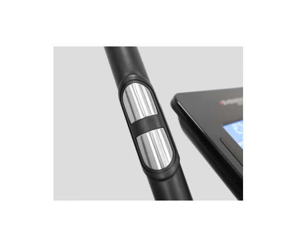 SVENSSON BODY LABS STRIDELINE EXA очень мобильный эллиптический тренажер - его легко можно переместить в другое место при помощи двух транспортировочных роликов. Устойчивость тренажера на неровной поверхности гарантируют компенсаторы неровностей пола. За считывание данных пульса отвечают вмонтированные в рукоятки сенсорные датчики. Монотонную тренировку разнообразит такое приятное дополнение, как подставка под гаджеты.