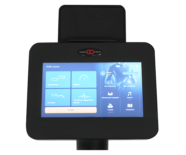 Высококонтрастный ЖК Дисплей. Информативный TFT сенсорный-дисплей диагональю 10,1 дюймов обладает высокой контрастностью и предоставляет полную информацию о параметрах тренировки. Отображаемые параметры: Скорость, Дистанция, Время, Расчет потраченных калорий, Информацию о пульсе (ЧСС), Уровень наклона, RPM, Watt.