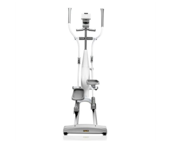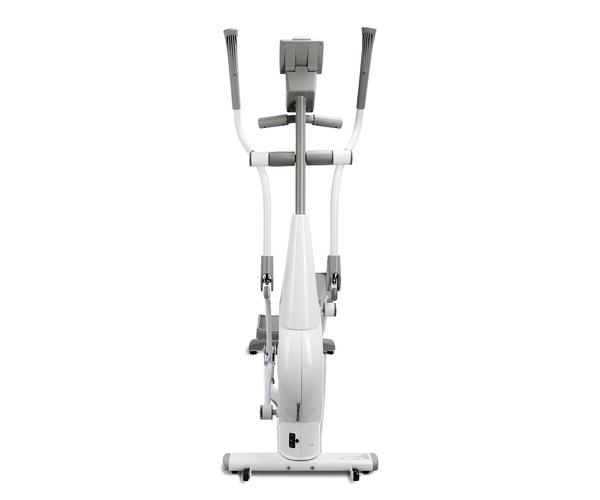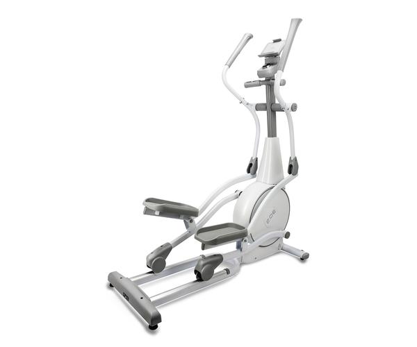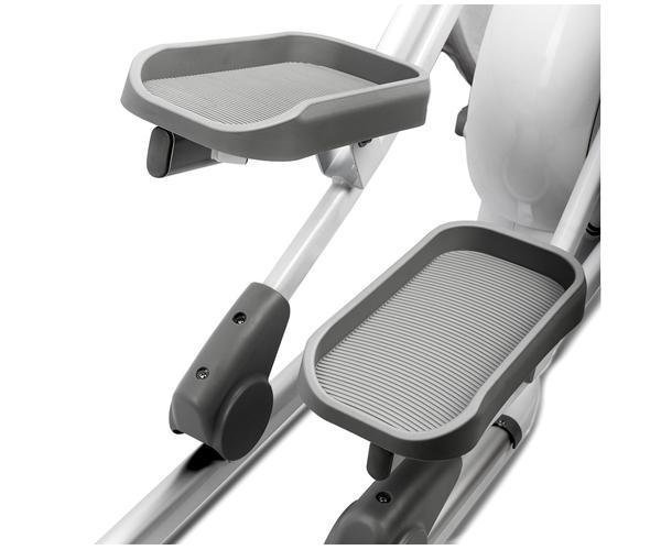 На передней консоли расположены регулируемая подставка под планшет (от 13 до 20 см) и круглый LED-дисплей с синей подсветкой, который отображает основные параметры тренировки: время, скорость, пульс (сенсорные датчики на поручнях), расстояние, затраченные калории. Максимально допустимый вес пользователя — 120 кг. Оптимальная длина шага — 40,64 см. Удобные широкие педали оснащены нескользящим покрытием и бортиками по краям. Предусмотрено 24 уровня нагрузки (регулируются электронно). Тренажёр оснащён транспортировочными роликами и компенсаторами неровности пола.