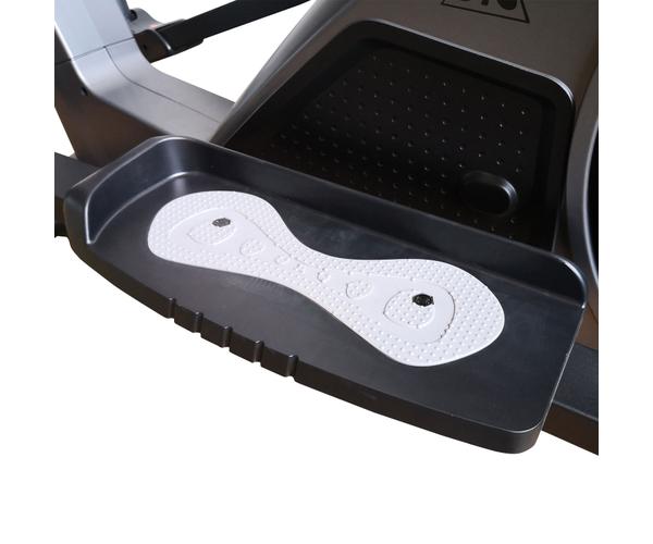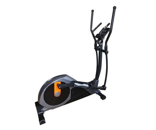Среднегабаритный Эллиптический тренажер DFC E605E тренажер для дома. Тренажер имеет магнитную систему нагружения, с механической регулировкой нагрузки. 8 фиксируемых положений нагрузки с помощью удобной ручки на стойке тренажера. На руле расположены 2 датчика пульса с отображением показаний на дисплее консоли. Как правило, встроенные на тренажерах датчики имеют погрешность измерения. Встроенные в передней части колеса позволят переместить тренажер по комнате после тренировки. Отсутствие адаптера 220В позволяет разместить тренажер в любом удобном для занятий месте. Консоль тренажера имеет встроенный держатель планшета или смартфона. Разместите гаджет сверху экрана, и получайте удовольствие от просмотра роликов, фильмов или музыки.