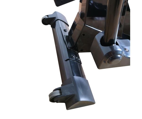 Тренажер имеет магнитную систему нагружения, с механической регулировкой нагрузки. 8 фиксируемых положений нагрузки с помощью удобной ручки на стойке тренажера. На руле расположены 2 датчика пульса с отображением показаний на дисплее консоли. Для перемещения тренажера по комнате после тренеровки, в передней части есть встроенные колеса.  Отсутствие адаптера 220В позволит вам разместить тренажер в любом удобном для занятий месте. Консоль тренажера имеет встроенный держатель планшета или смартфона. Запатентованная система двустороннего вращение маховика придает дополнительную плавность и более правильный ход педалей при занятии.