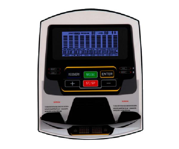 На тренажере установлен простой и современный компьютер с ЖК-дисплеем. Управление с помощью кнопок. На дисплее отображается весь необходимый список параметров тренировки. Измерение пульса осуществляется с помощью встроенных датчиков на дополнительных поручнях.