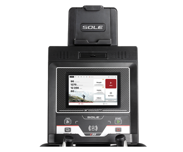 В E35 теперь встроен держатель для планшета, чтобы вы могли использовать свои интеллектуальные устройства для просмотра передач или выполнения упражнений. Также в комплект поставки входят аудиоколонки Bluetooth, чтобы вы могли слушать музыку.