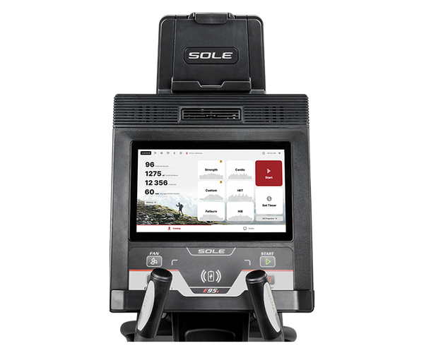 Эллиптический тренажер Sole E95S (2023) - самый доступный тренажер с регулируемой длиной шага, с 13,3-дюймовым сенсорным дисплеем, Wi-Fi, и беспроводным зарядным устройством.