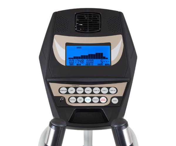Консоль тренажера имеет 4 пользовательских режима и 11 предустановленных тренировочных программы, в том числе две пульсозависемых программы, при выполнении которых компьютер ориентируется на частоту Вашего пульса. Для точного отслеживания пульса, есть возможность подключения беспроводного кардио пояса. Четкий LSD - дисплей с голубой подсветкой позволяет легко контролировать процесс тренировки. Утяжеленный маховик и надежные подшипники обеспечивают мягкий и плавный ход тренажера.