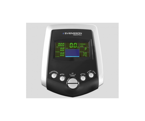 Эллиптический тренажер Svensson Industrial Base X550 - полупрофессиональный эллиптический тренажер с электромагнитной системой нагружения. Прочная стальная рама рассчитана на пользователей с весом до 160 кг. Тренировочный пакет включает в себя 14 программы. Контроль за пульсом осуществляется при помощи сенсорных датчиков. 16 уровней нагрузки с электронной регулировкой. За плавность хода отвечает маховик с инерционным весом в 25 кг. Расстояние между педалями минимальное - всего 9 см. Длина шага регулируется от 46 до 58 см.