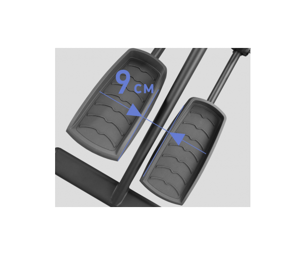 Антискользящие педали увеличенного размера позволяют занять любое удобное положение. Рифленая поверхность обеспечивает надежное сцепление между подошвами тренировочной обуви и педалями. Помимо этого, накладки на педали выполнены из прорезиненного материала - таким образом, создается определенный амортизационный эффект. Накладки легко снимаются и быстро моются.