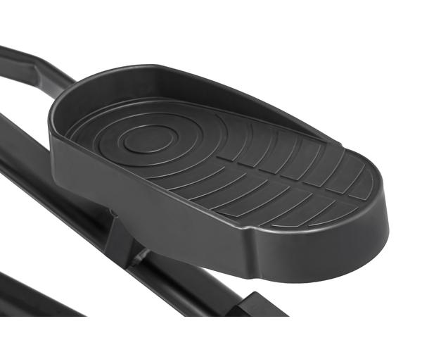 В своей основе тренажер построен на новейшей биовекторной платформе bioTECH™ Vertical. Приводная система расположена спереди в вертикальном положении – на текущий момент, это самая передовая компоновка в эллиптических тренажерах, обеспечивающая максимум эффективности, комфорта и безопасности. Помимо отличной биомеханики, такая конструкция позволяют существенно сэкономить пространство – в рабочем состоянии (с учетом вылета педалей) эллипсоид занимает всего 150 см в длину. Длина шага для Frontech FRA составляет 46 см – этого вполне достаточно для большинства пользователей. Отдельно стоит выделить великолепный Q-Фактор (расстояние между педалями) – это показатель составляет всего 4 см. Плавное скольжение и равномерную нагрузку на всем цикле движения обеспечивает тяжелый маховик весом с инерционным весом 28,6 кг и трёхкомпонентный дисковый шатун с реверсивным ходом. Здесь установлены высококачественные малошумные ролики с улучшенным коэффициентом скольжения, выполненные из высокотемпературного термопластичного полиуретана (TPU). Абсолютно во всех сочленениях используются подшипники (производства японской NSK) – это не только еще один плюс в копилку комфортной и эффективной биомеханики, но и повышенный уровень надежности. Максимальный вес пользователя для этого эллипсоида составляет 150 кг.