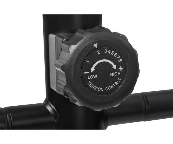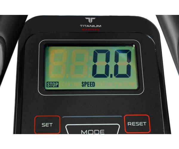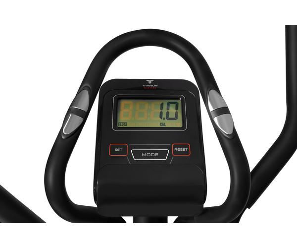 Тренировочный компьютер представлен черно-белым LCD-дисплеем диагональю 5 дюймов (12,7 см). На экран выводятся все основные параметры тренировки - время, дистанция, скорость, калории, обороты в мин. и пульс. Измерение пульса происходит путем удержания ладоней на сенсорных датчиках пульса, расположенных на поручнях. Нагрузка регулируется механическим путем в 8 положениях. К числу дополнительных характеристик эллипсоида относятся такие опции как транспортировочные ролики и компенсаторы неровностей пола. Переместить изделие из одного места в другое не составит большого труда, а компенсаторы позволят отрегулировать положение ножек на неровной поверхности.